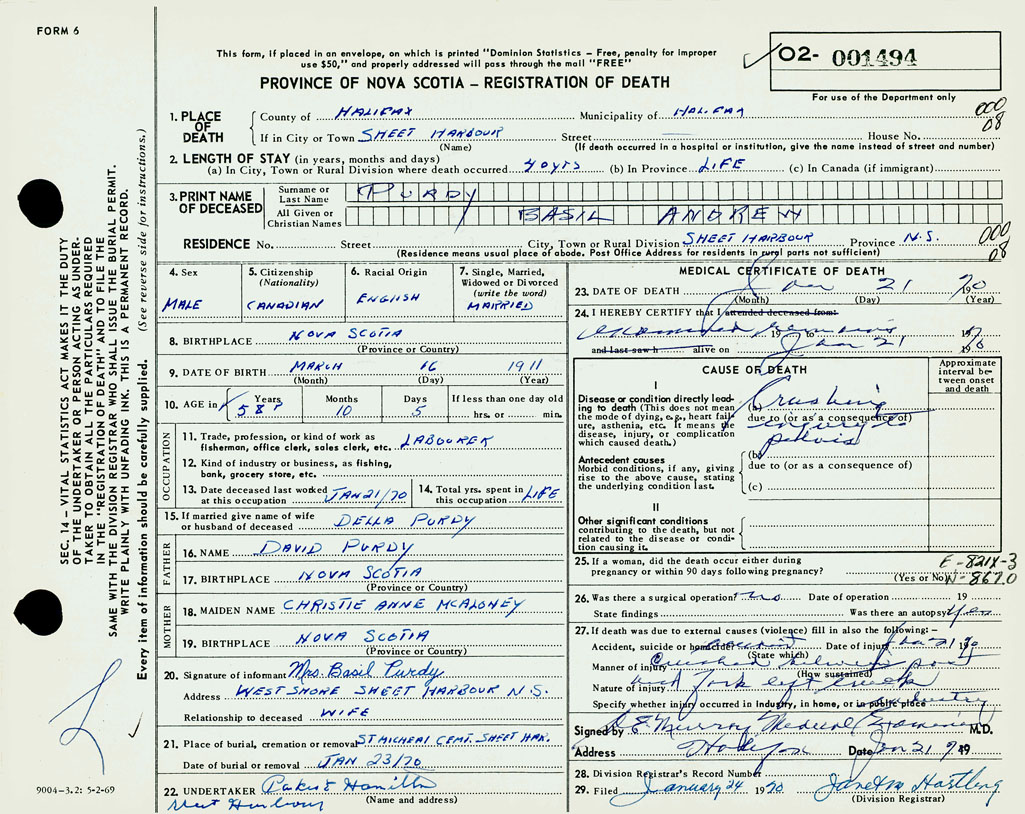 PROVINCE OF NOVA SCOTIA — REGISTRATION OF DEATH