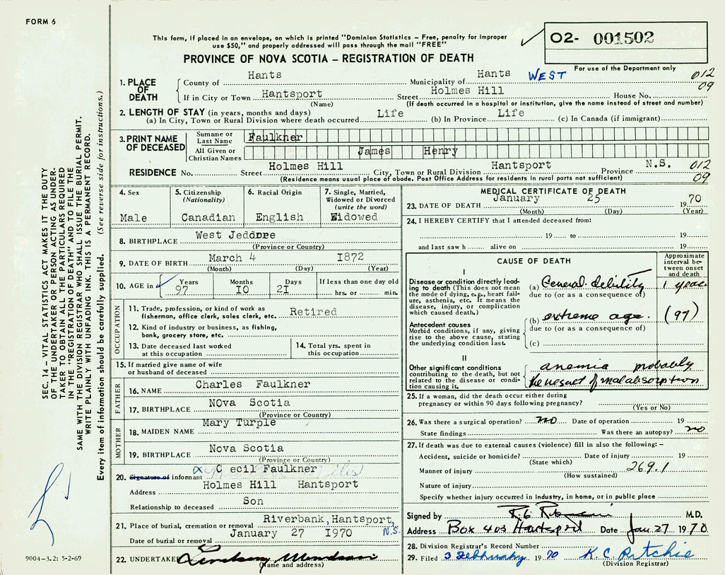 PROVINCE OF NOVA SCOTIA — REGISTRATION OF DEATH