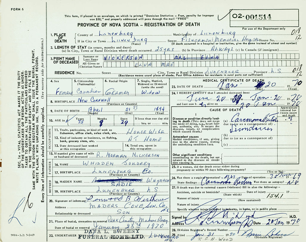 22. Undertaker Dana L. Sweeny Funeral Home Ltd. Lunenburg