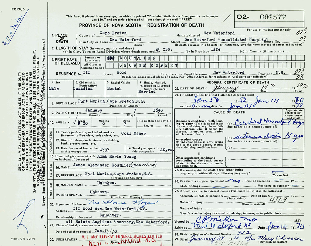 3. PRINT NAME OF DECEASED Boutilier, George Robert
