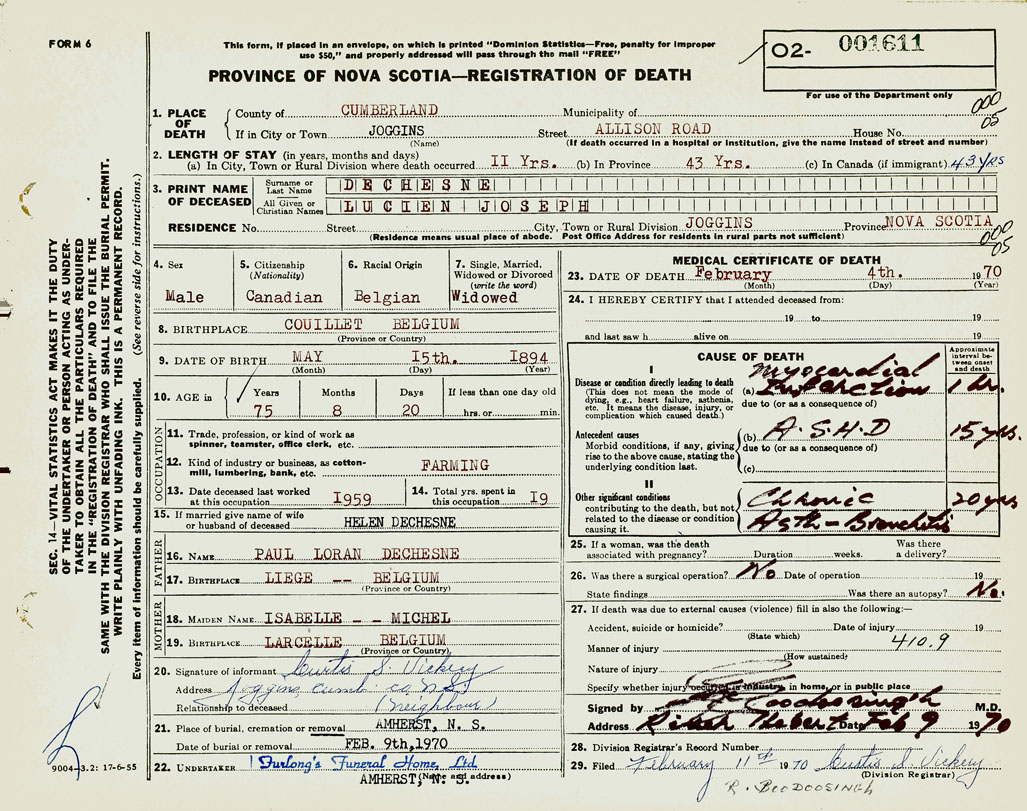 1. PLACE OF DEATH County of Cumberland If in City or Town Joggins
