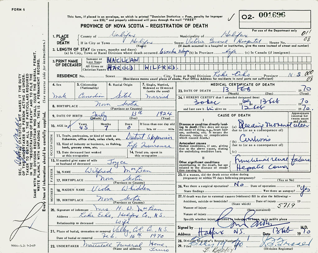 3. PRINT NAME OF DECEASED MacLean, Harold Wilfred