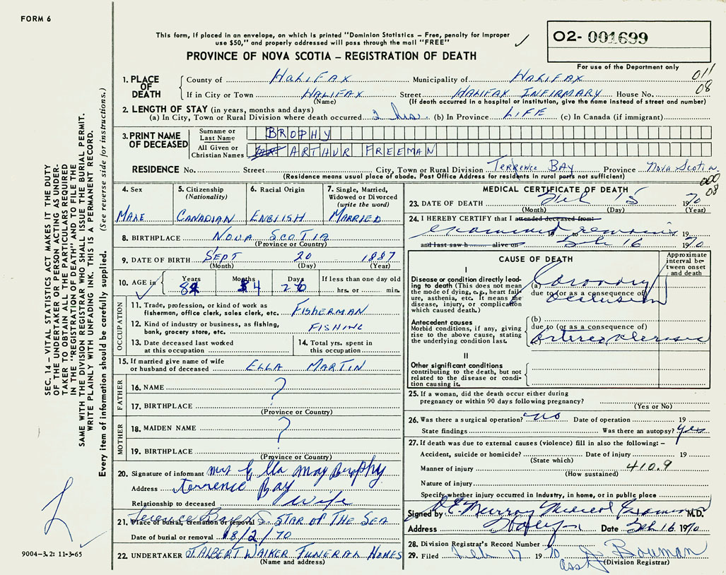 PROVINCE OF NOVA SCOTIA — REGISTRATION OF DEATH