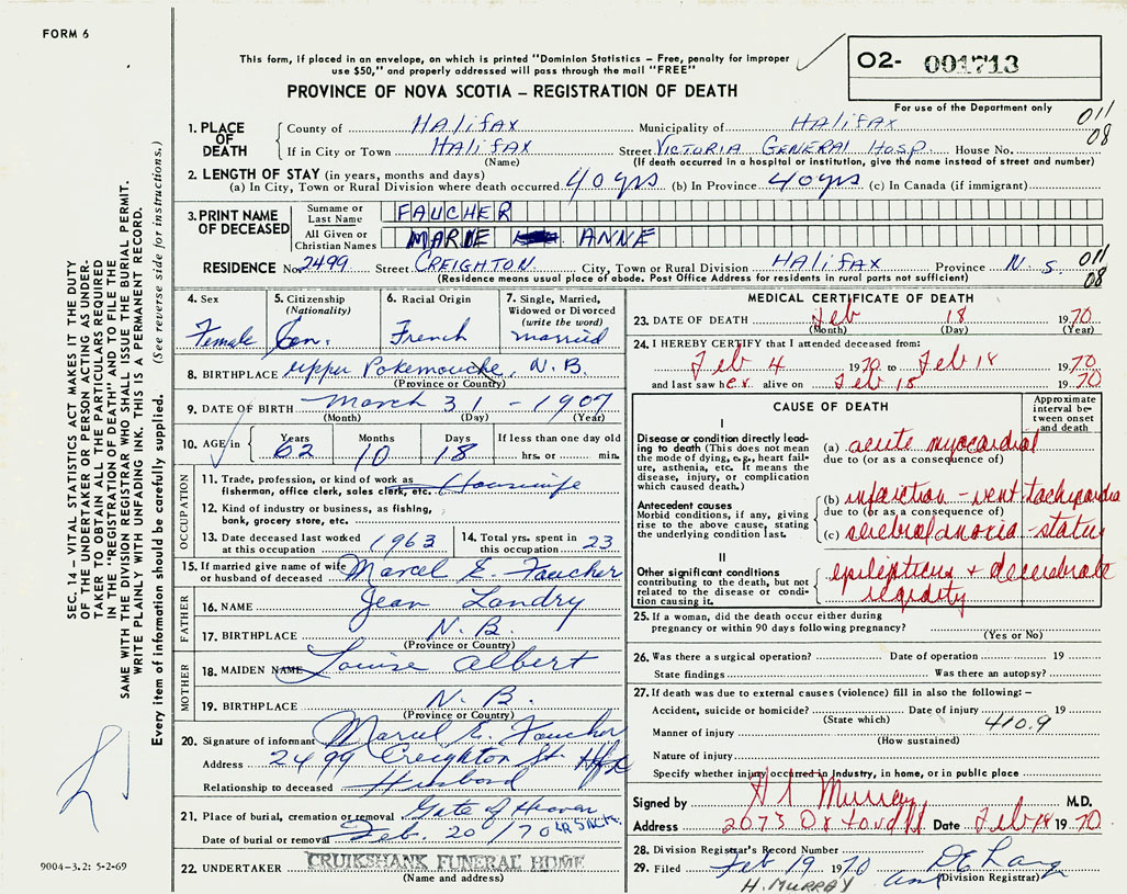 3. PRINT NAME OF DECEASED Faucher, Marie Anne