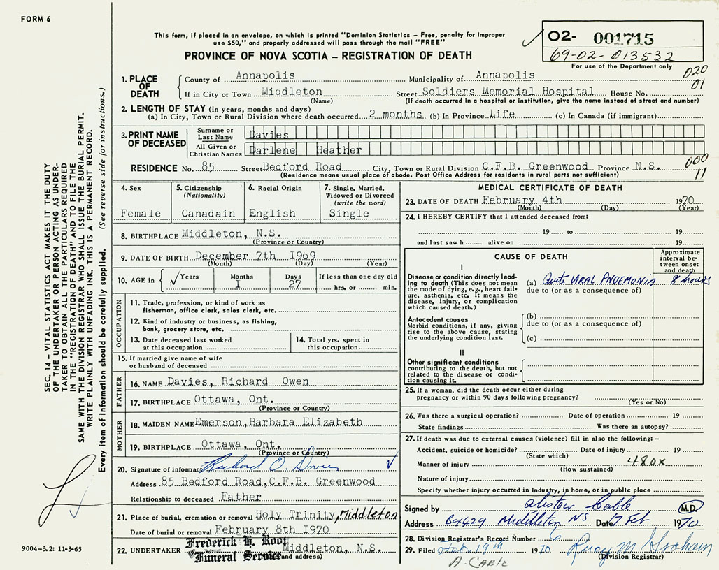 3. PRINT NAME OF DECEASED Davies, Darlene Heather