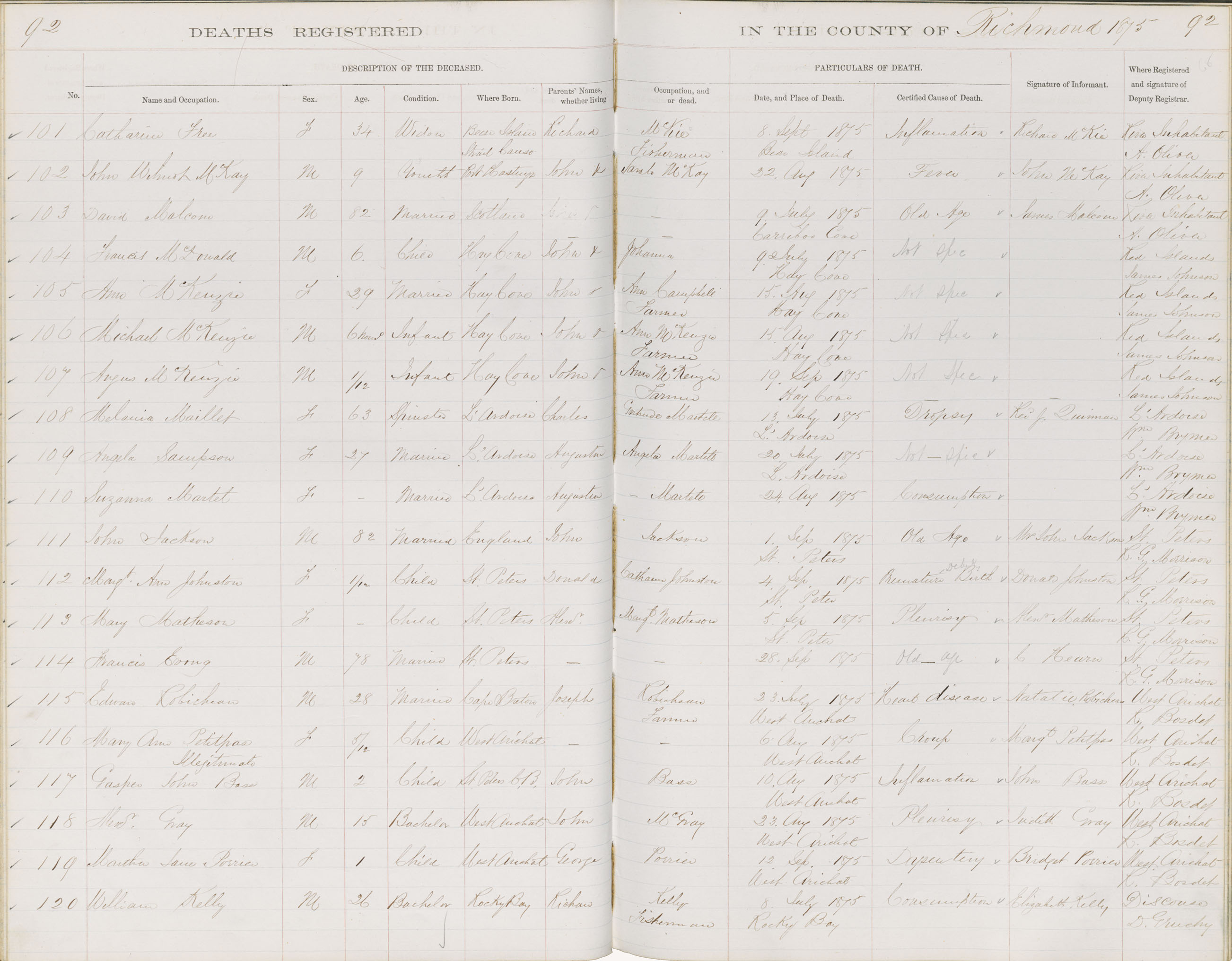 Death Registration: Year: 1875 book: 1815 page: 92 number: 101