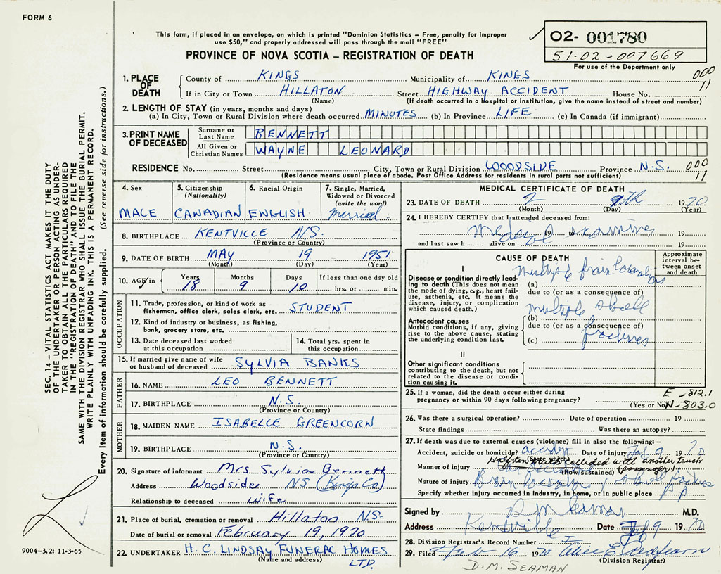 PROVINCE OF NOVA SCOTIA — REGISTRATION OF DEATH