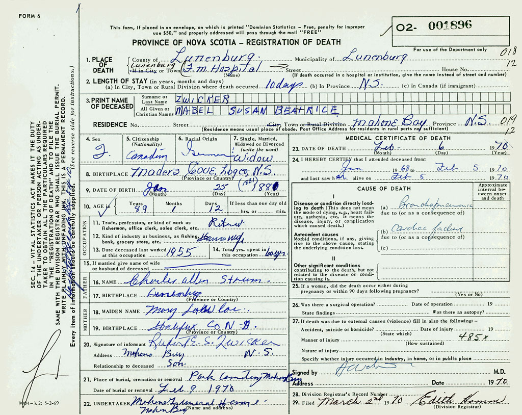 3. PRINT NAME OF DECEASED Zwicker, Mabel Susan Beatrice
