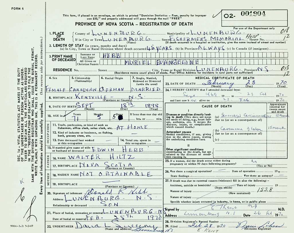 PROVINCE OF NOVA SCOTIA — REGISTRATION OF DEATH