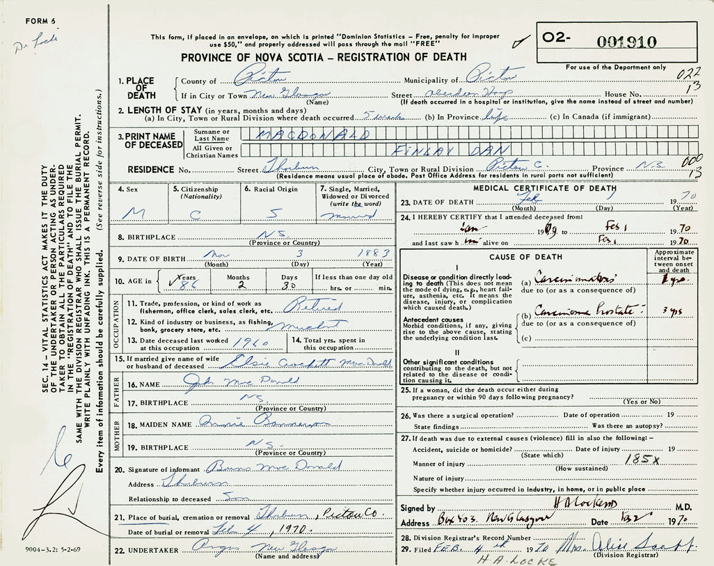 3. PRINT NAME OF DECEASED MacDonald, Finlay Dan