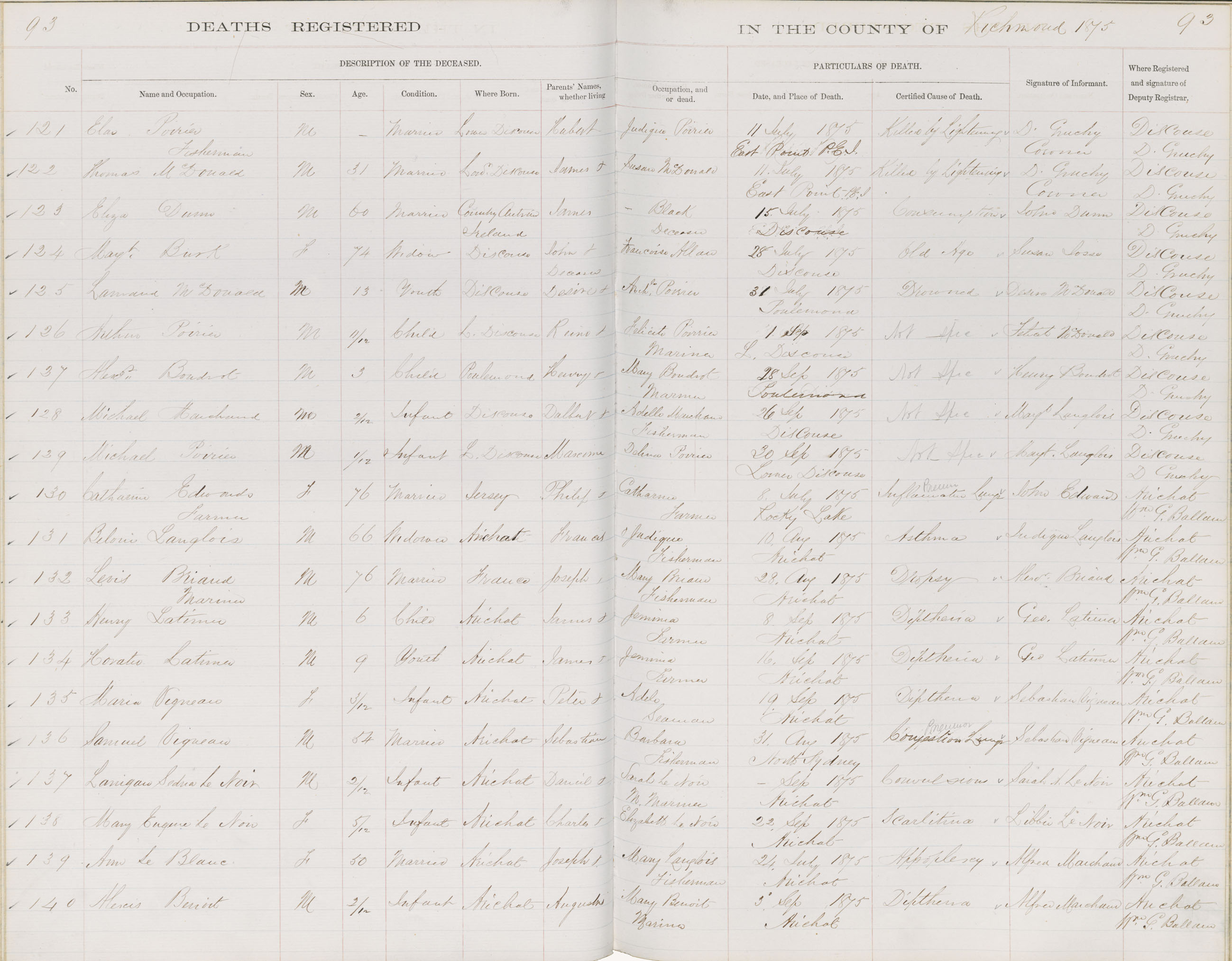 Death Registration: Year: 1875 book: 1815 page: 93 number: 140