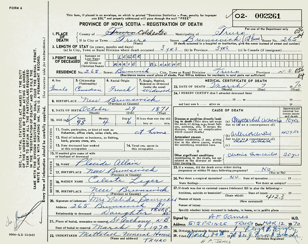 3. PRINT NAME OF DECEASED Leger, Marie Blanche