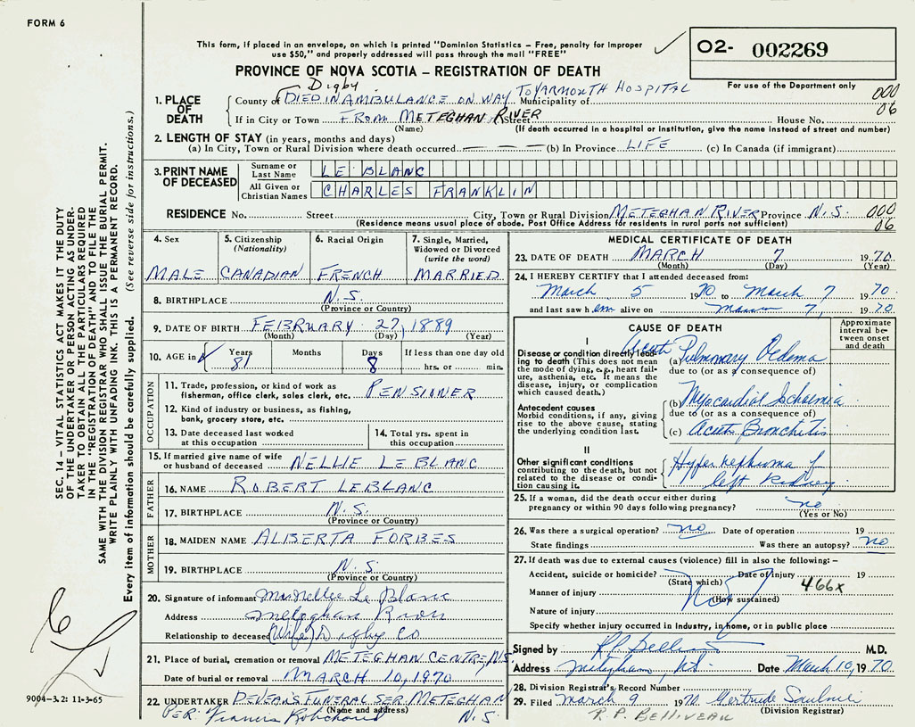 3. PRINT NAME OF DECEASED LeBlanc, Charles Franklin