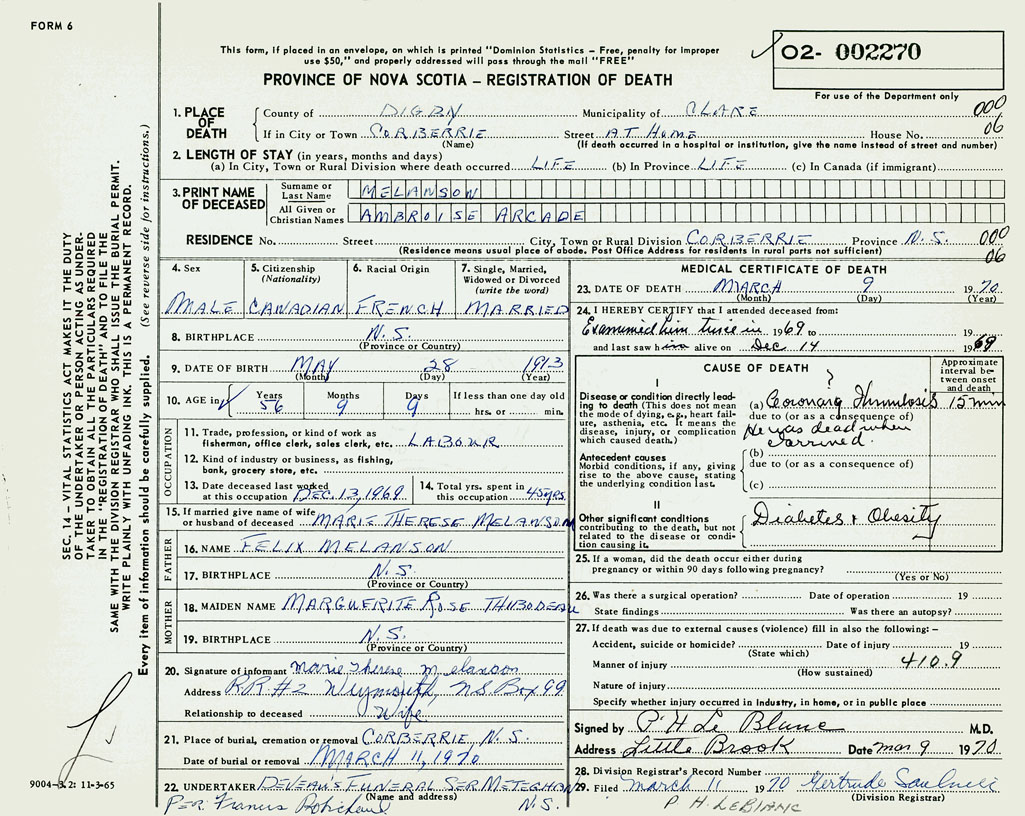 3. PRINT NAME OF DECEASED Melanson, Ambroise Arcade