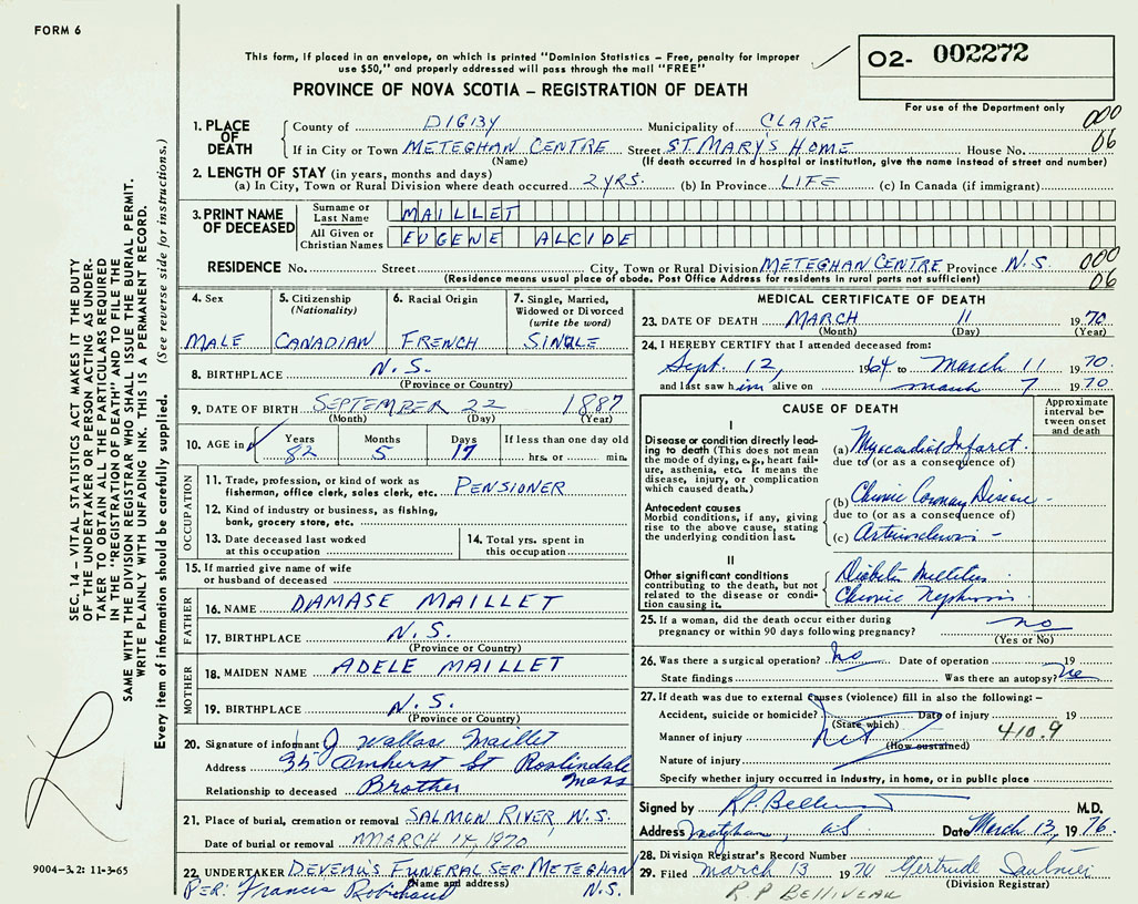 3. PRINT NAME OF DECEASED Maillet, Eugene Alcide