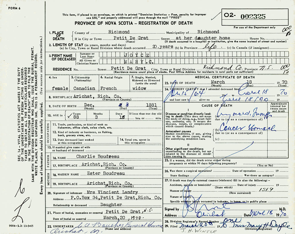 1. PLACE OF DEATH County of Richmond If in City or Town Petit-de-Grat