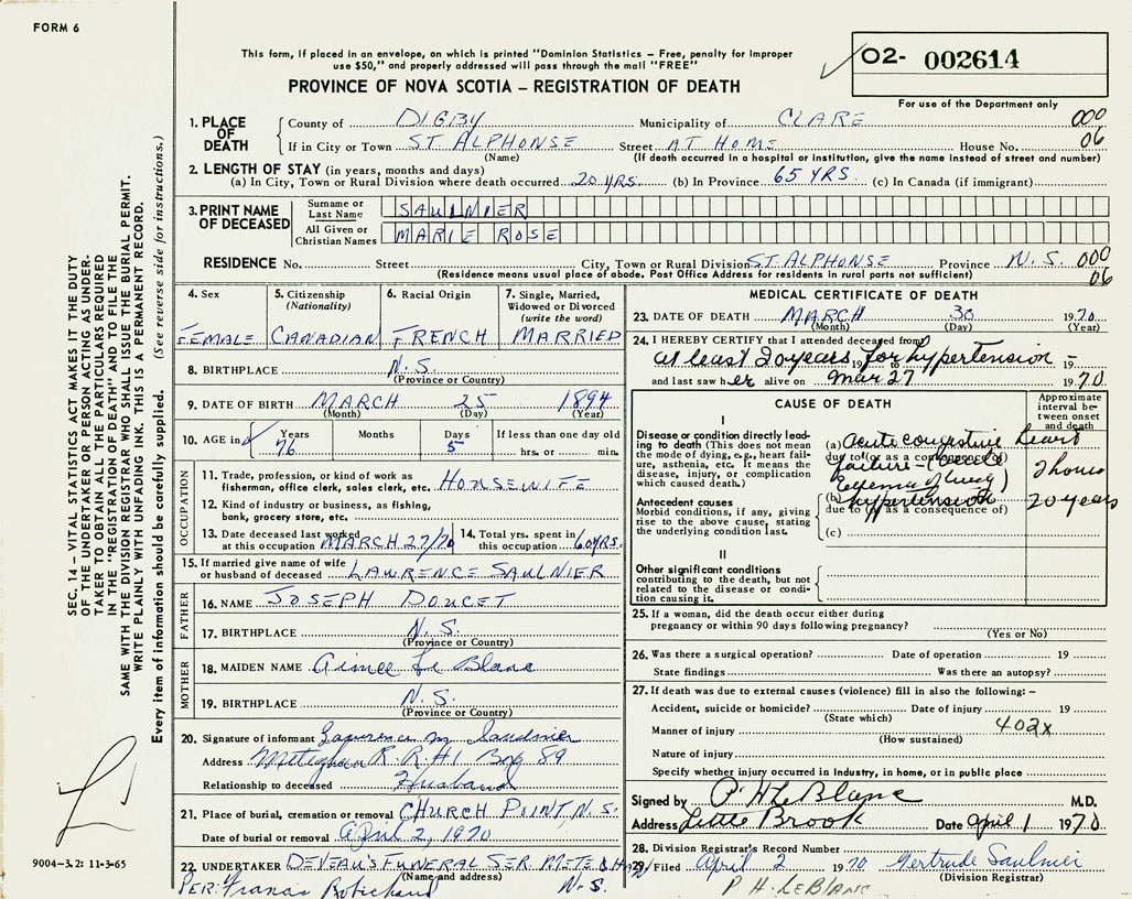 22. Undertaker Deveau's Funeral Ser. Meteghan