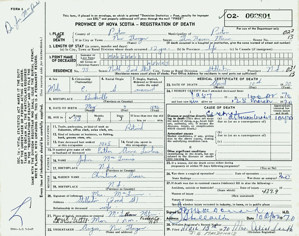 3. PRINT NAME OF DECEASED MacInnis, Henry