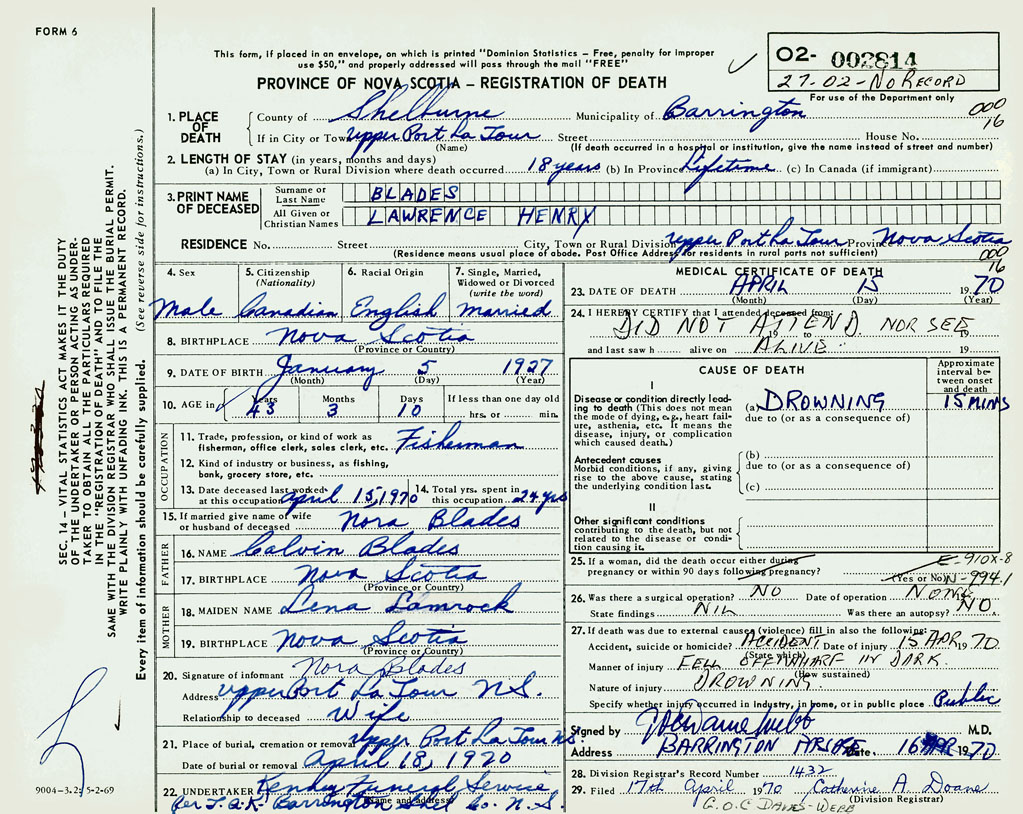 3. PRINT NAME OF DECEASED Blades, Lawrence Henry
