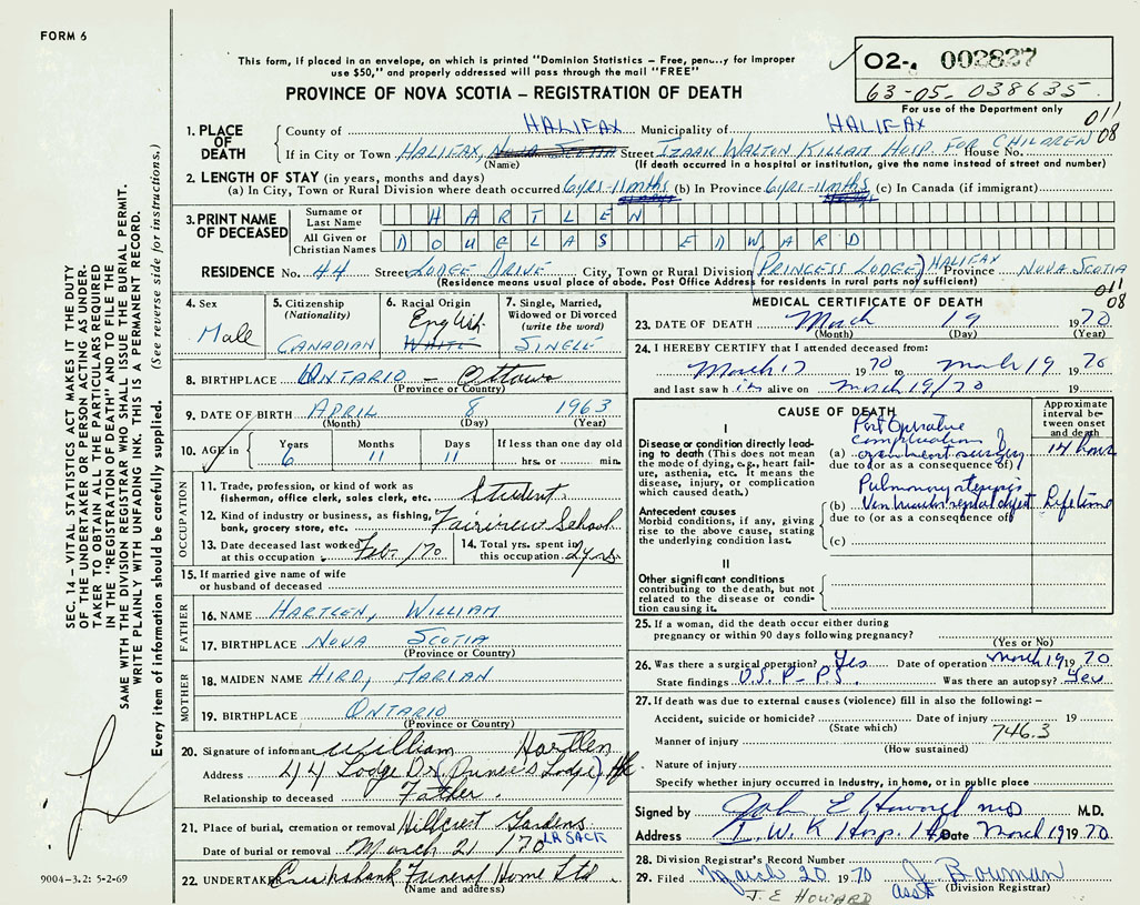 PROVINCE OF NOVA SCOTIA — REGISTRATION OF DEATH