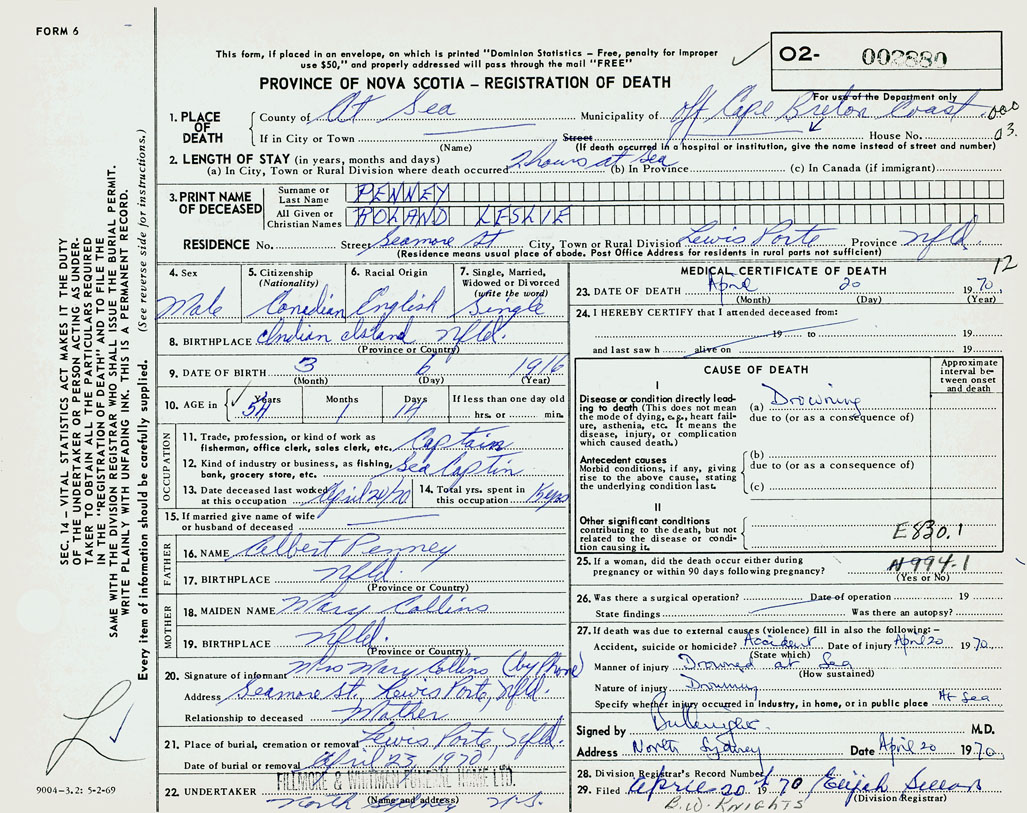 PROVINCE OF NOVA SCOTIA — REGISTRATION OF DEATH