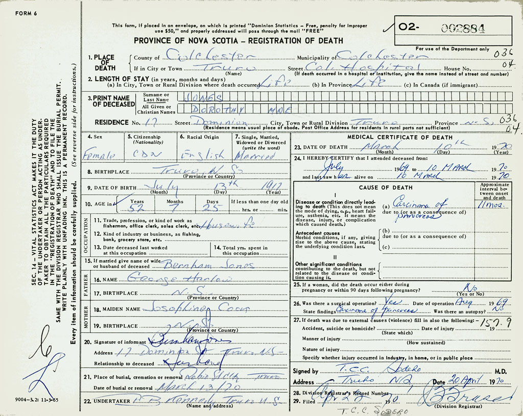 PROVINCE OF NOVA SCOTIA — REGISTRATION OF DEATH