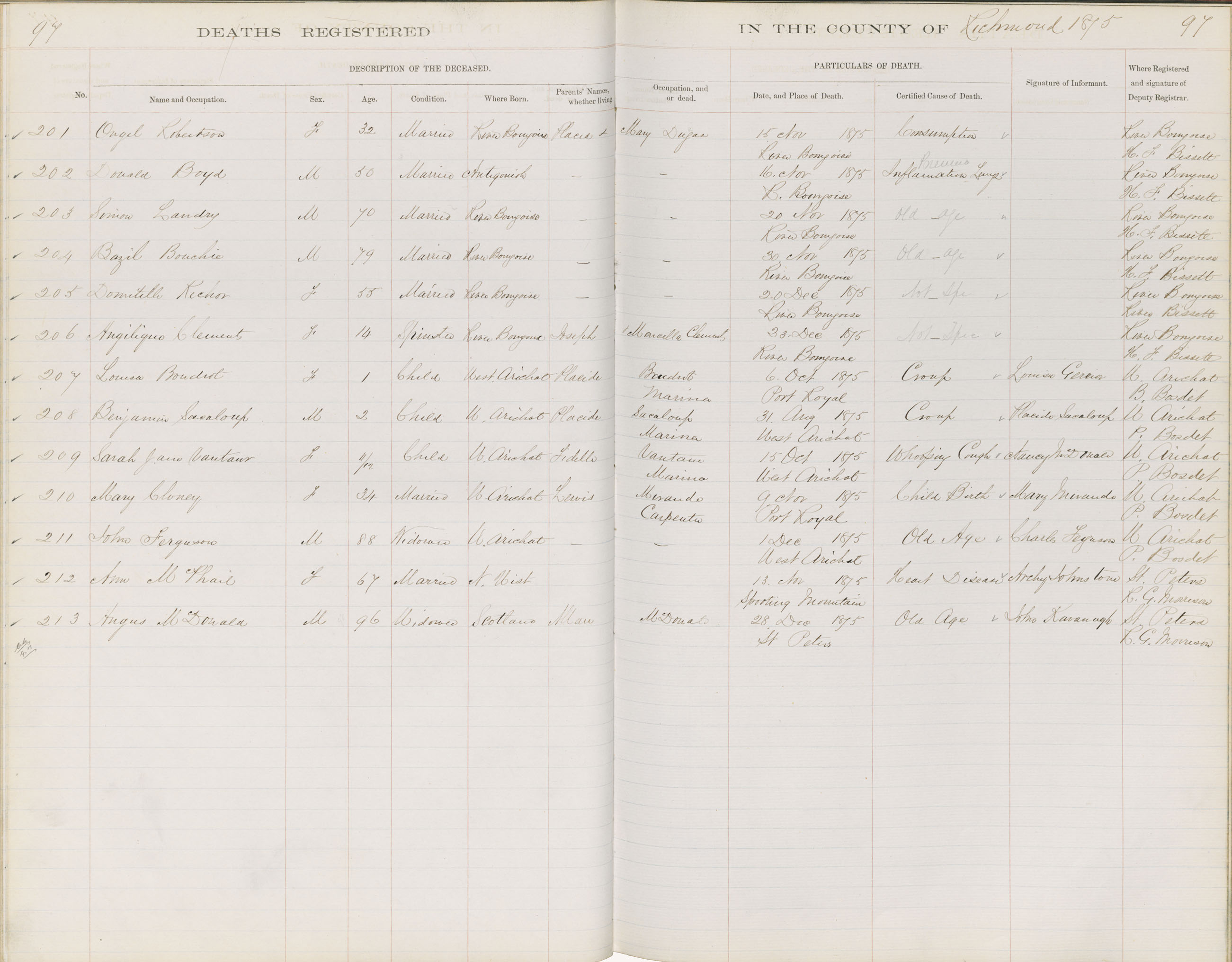 Death Registration: Year: 1875 book: 1815 page: 97 number: 213
