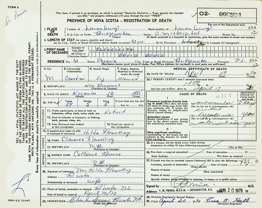 PROVINCE OF NOVA SCOTIA — REGISTRATION OF DEATH