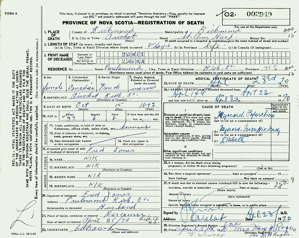 1. PLACE OF DEATH County of Richmond If in City or Town Arichat