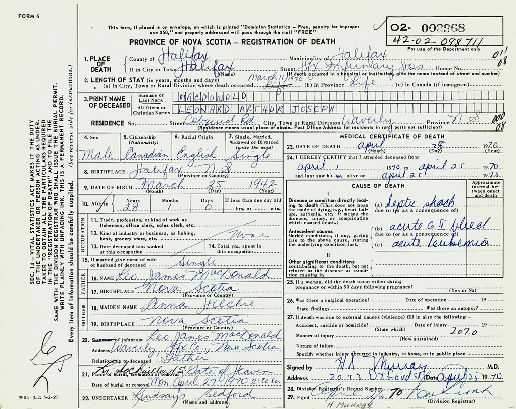 3. PRINT NAME OF DECEASED MacDonald, Leonard Arthur Joseph