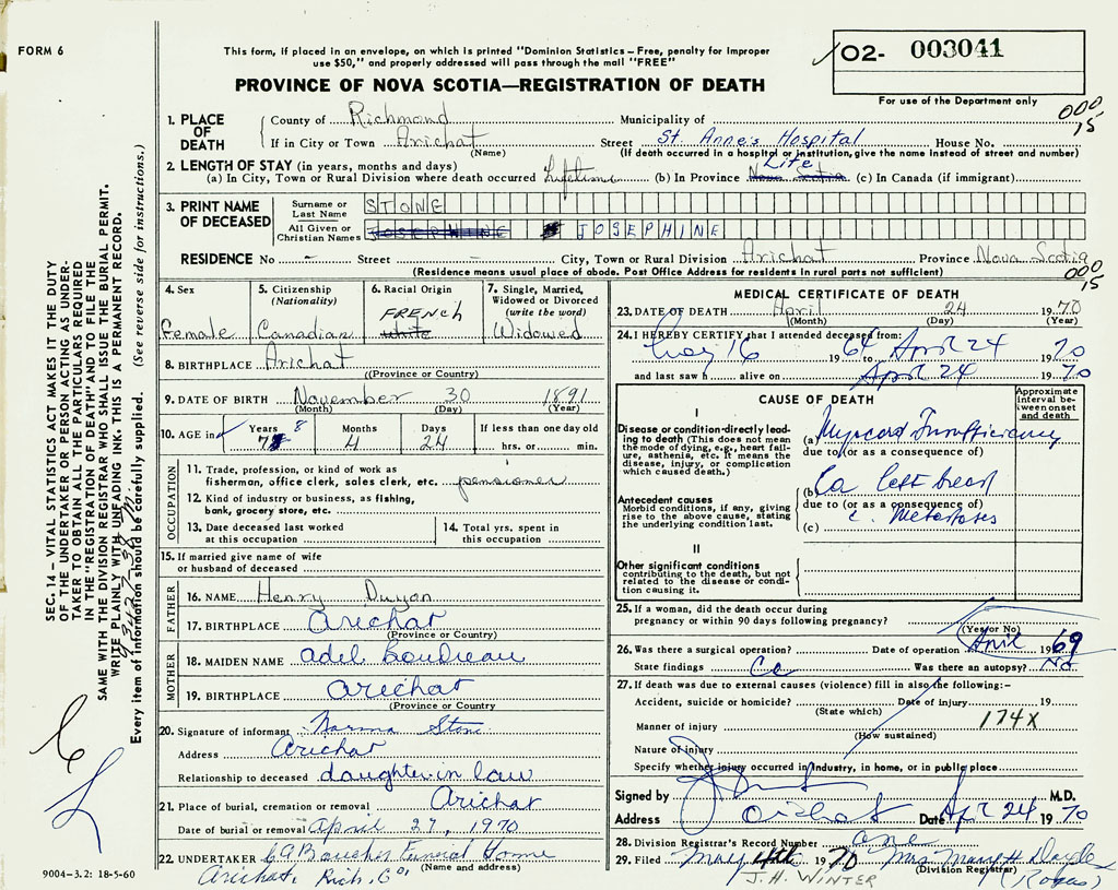 1. PLACE OF DEATH County of Richmond If in City or Town Arichat