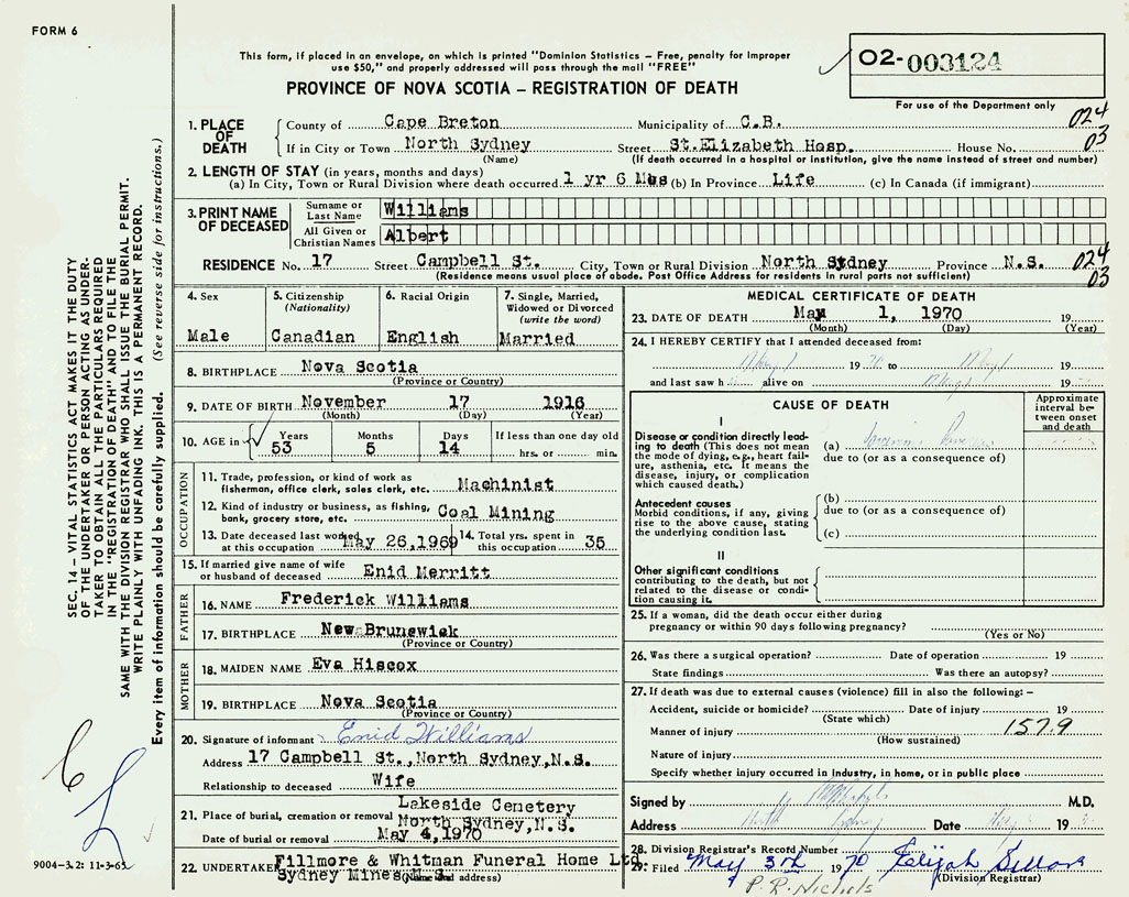 22. Undertaker Fillmore & Whitman Funeral Home Ltd, Sydney Mines