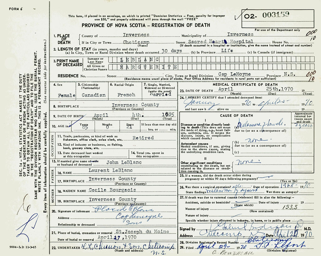 3. PRINT NAME OF DECEASED LeBlanc, Marguerite