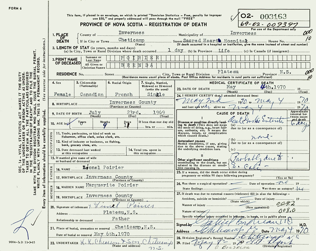1. PLACE OF DEATH County of Inverness If in City or Town Cheticamp