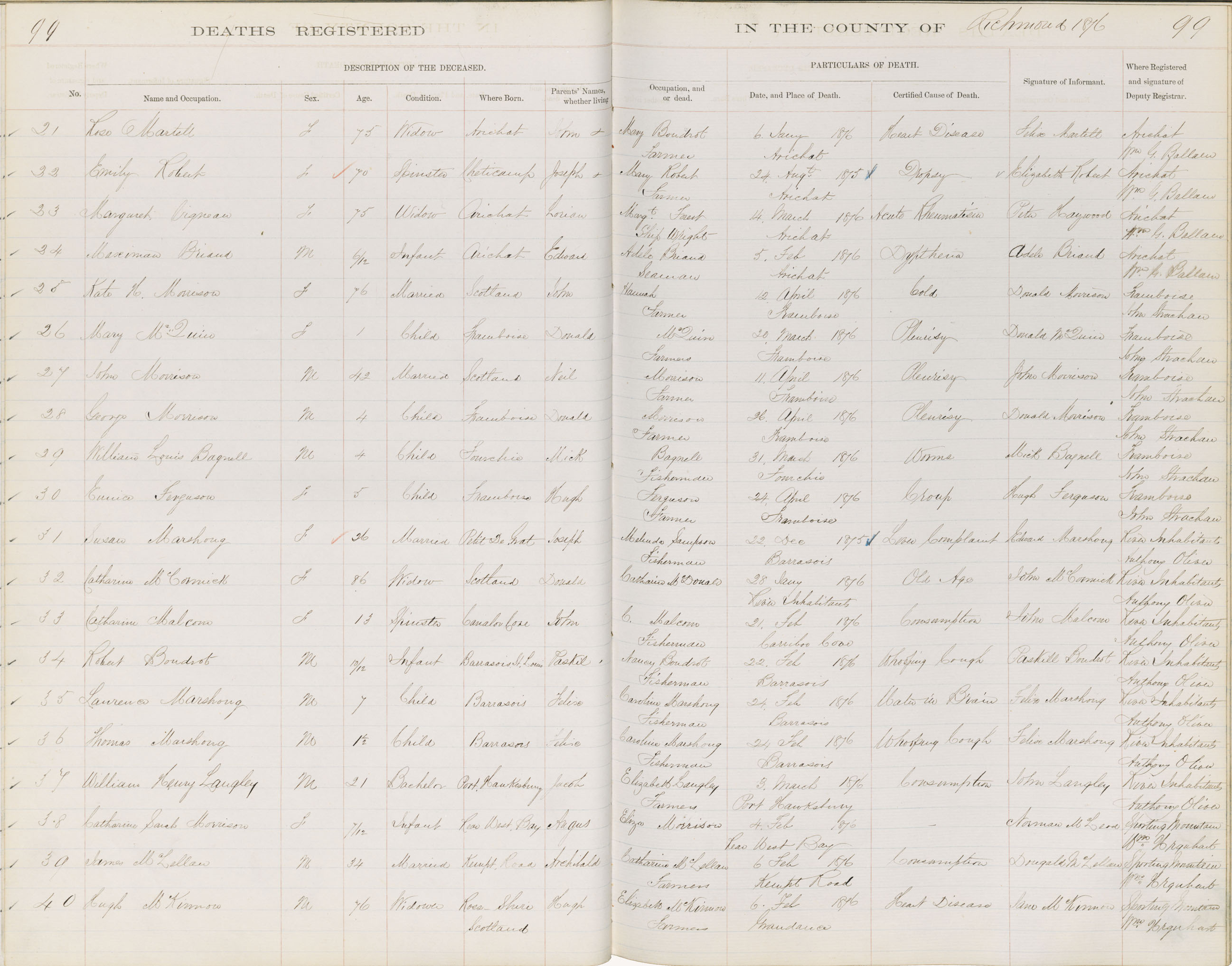 Death Registration: Year: 1876 book: 1815 page: 99 number: 30