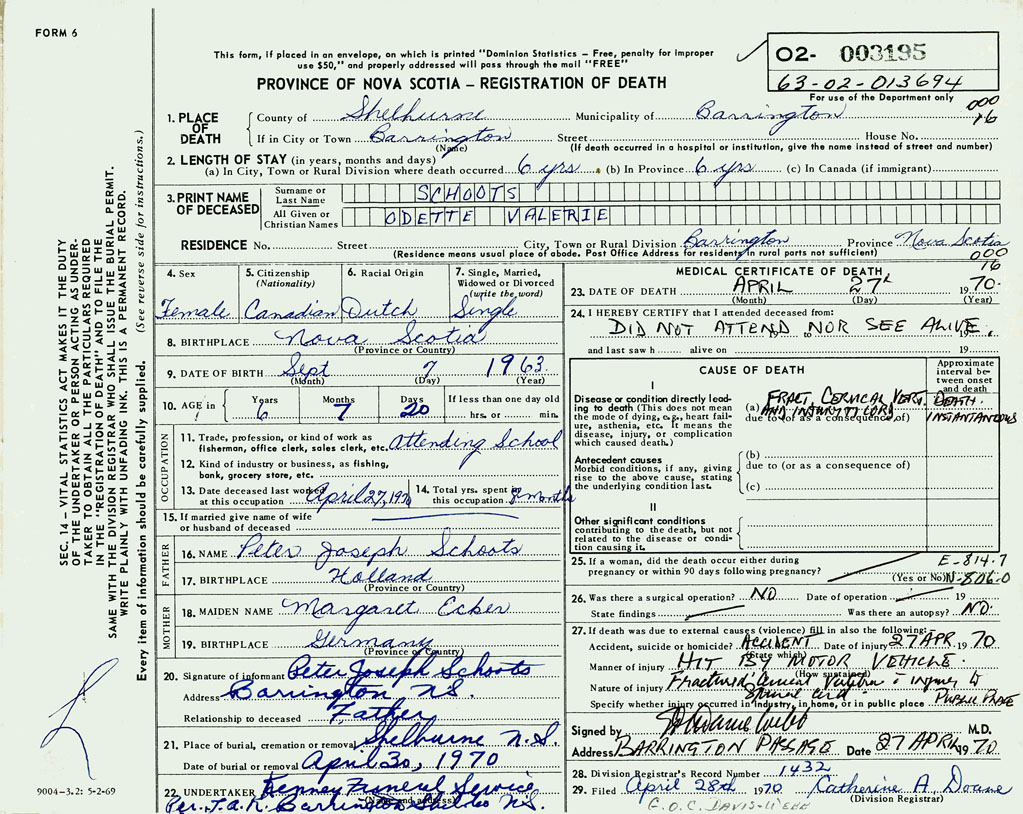 PROVINCE OF NOVA SCOTIA — REGISTRATION OF DEATH