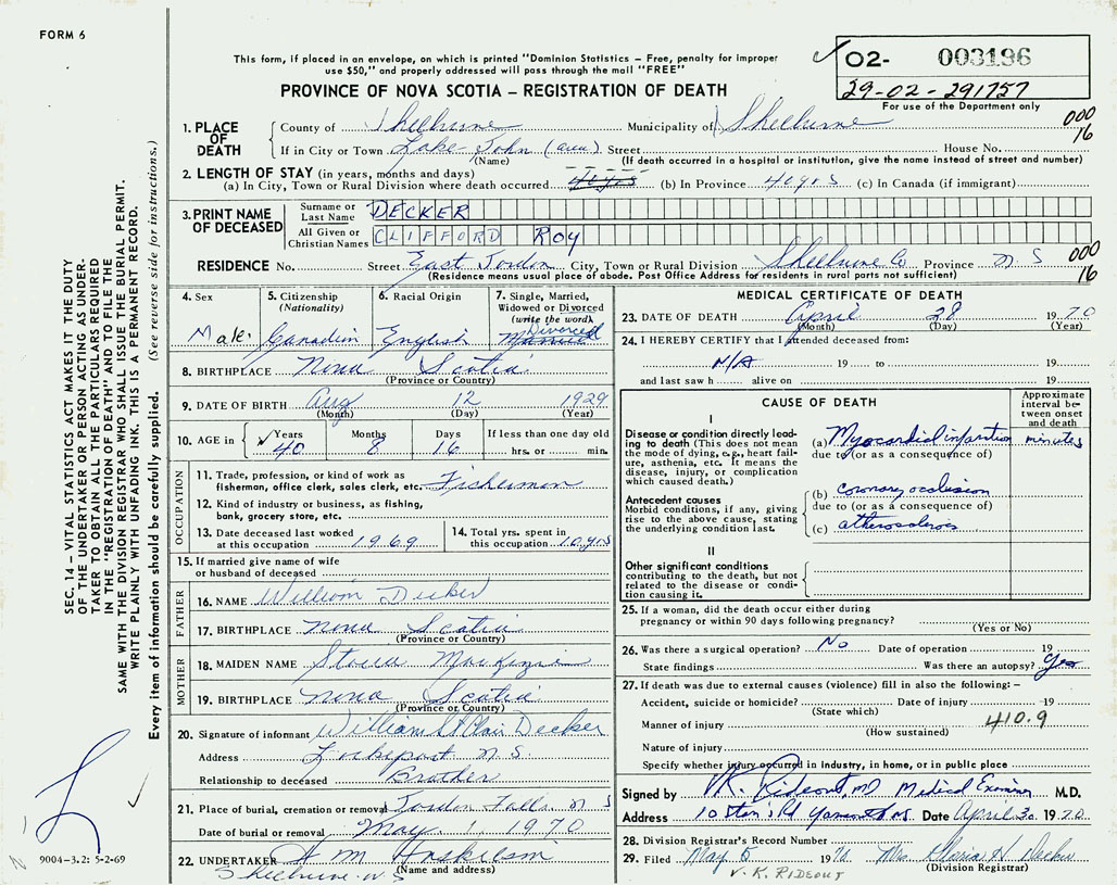 PROVINCE OF NOVA SCOTIA — REGISTRATION OF DEATH