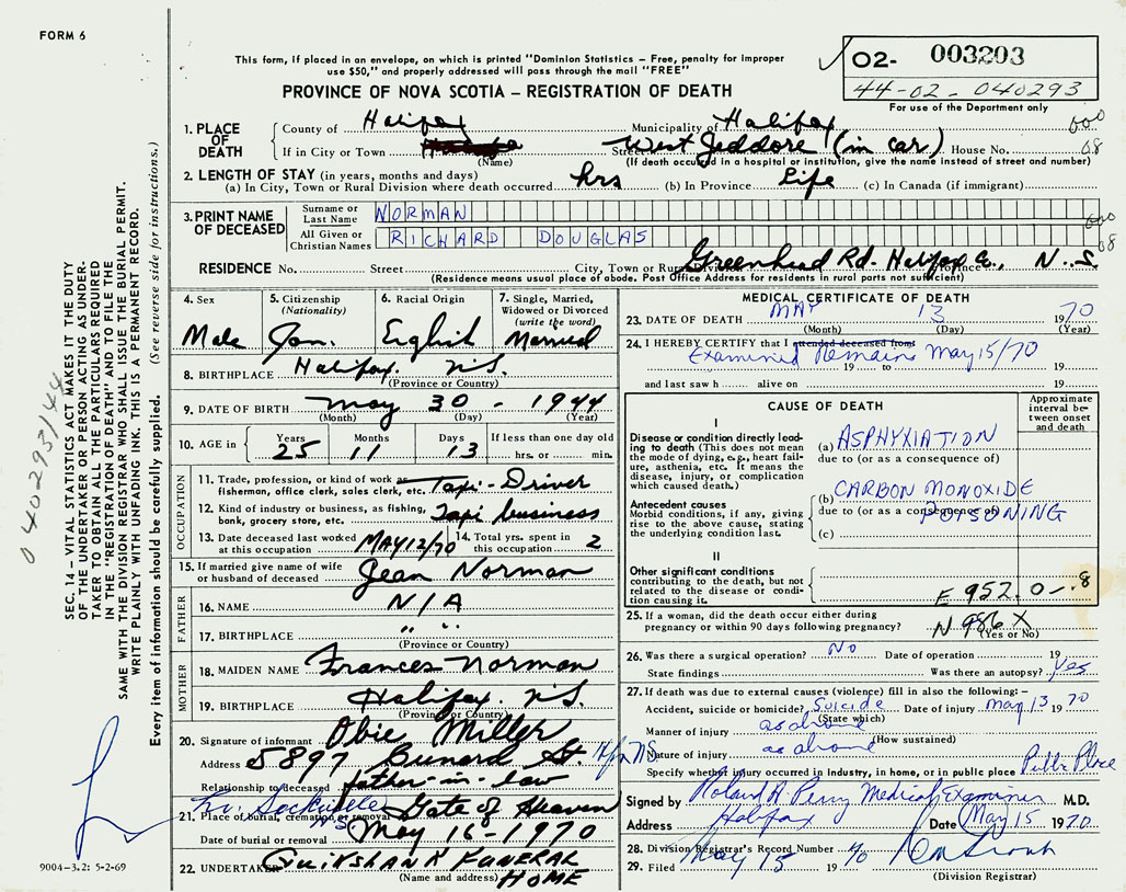 PROVINCE OF NOVA SCOTIA — REGISTRATION OF DEATH