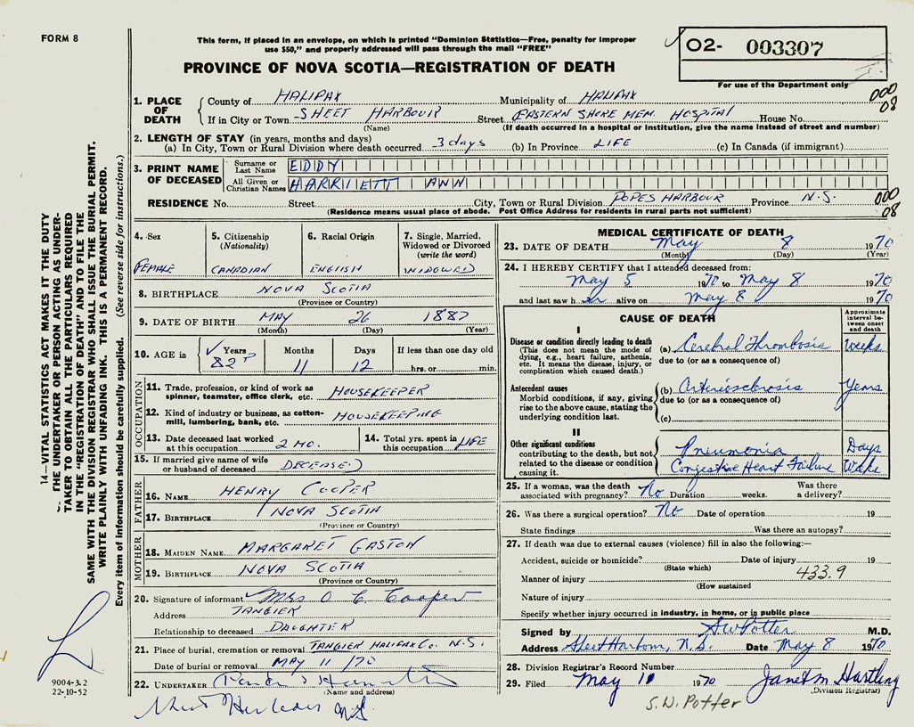 22. Undertaker Parker Hamilton, Sheet Harbour, NS