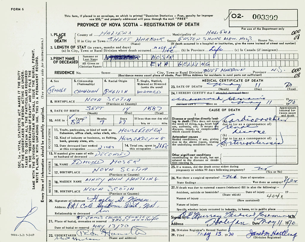 PROVINCE OF NOVA SCOTIA — REGISTRATION OF DEATH