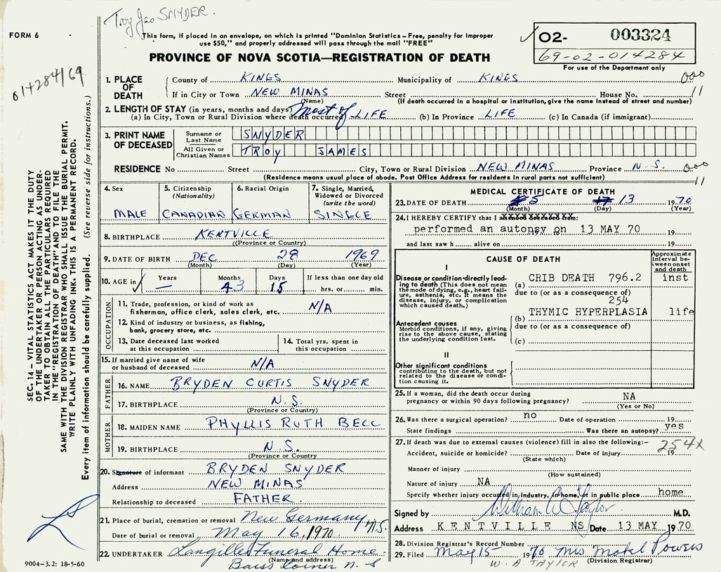 3. PRINT NAME OF DECEASED Snyder, Troy James