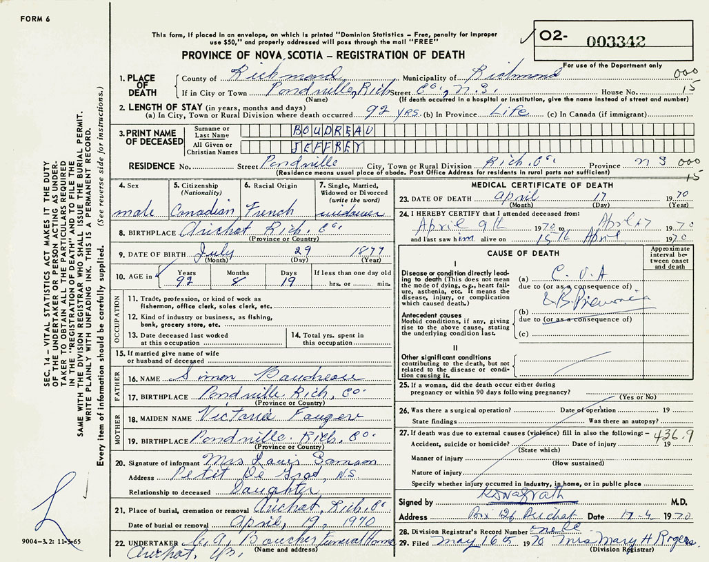 3. PRINT NAME OF DECEASED Boudreau, Jeffrey