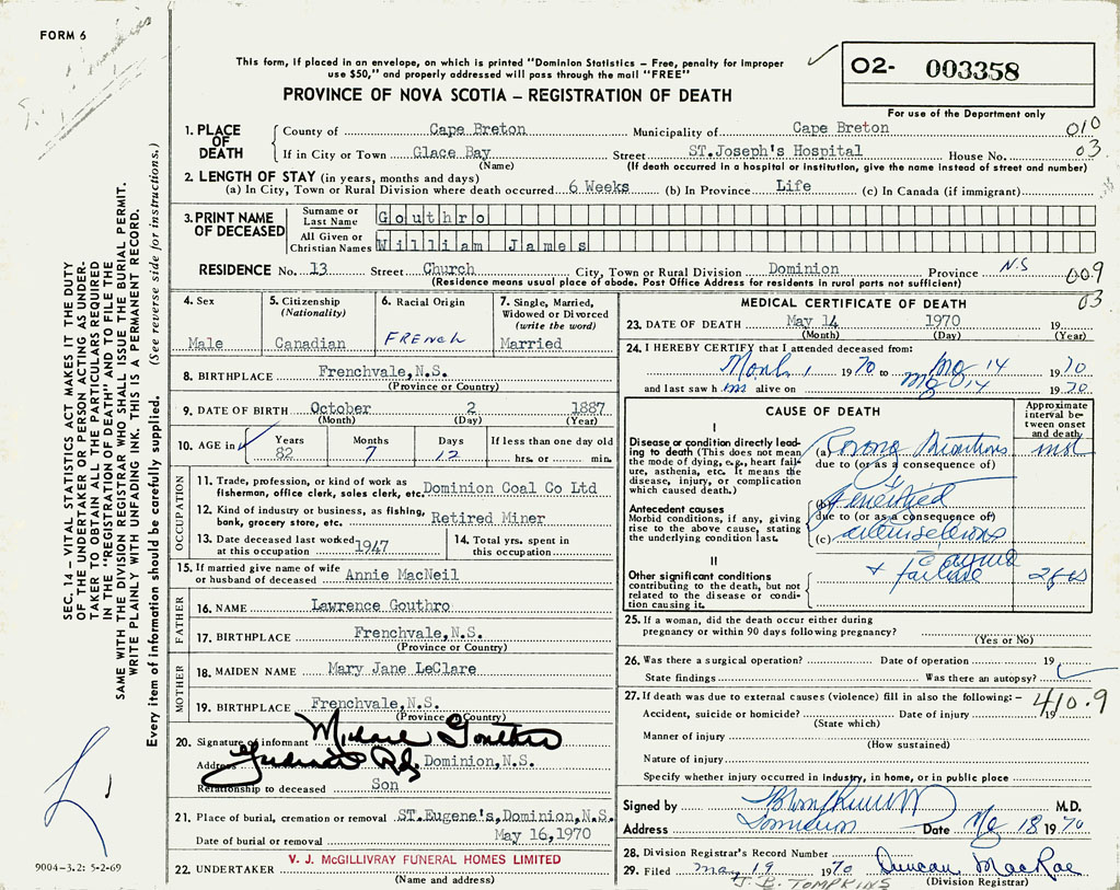 3. PRINT NAME OF DECEASED Gouthro, William James