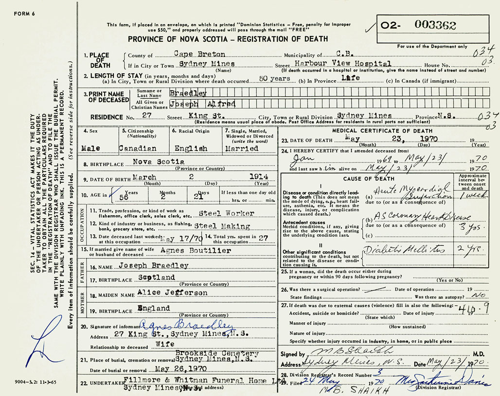 22. Undertaker Fillmore & Whitman Funeral Home Ltd, Sydney Mines
