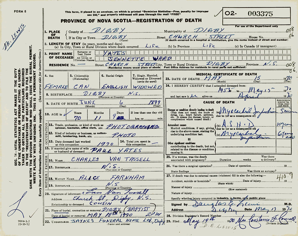 PROVINCE OF NOVA SCOTIA — REGISTRATION OF DEATH