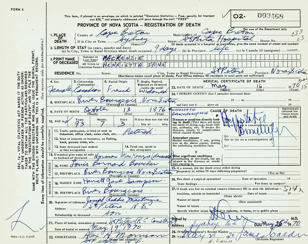 3. PRINT NAME OF DECEASED MacKenzie, Henrietta Jane