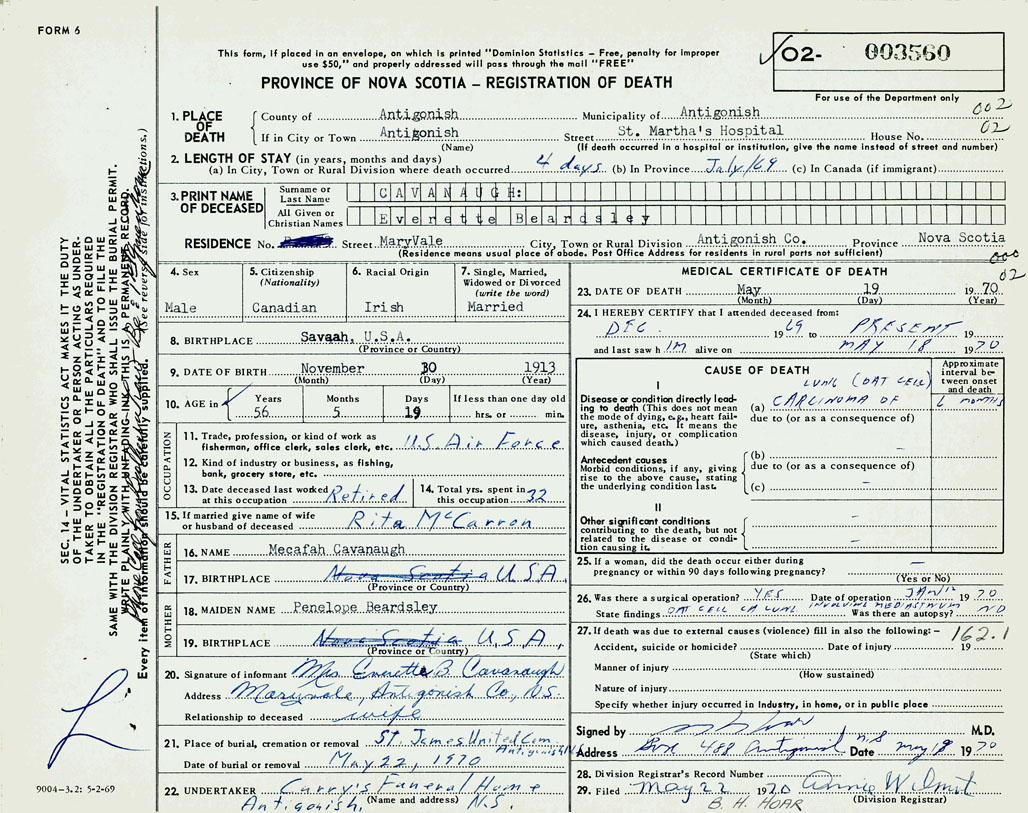 3. PRINT NAME OF DECEASED Cavanaugh, Everette Beardsley