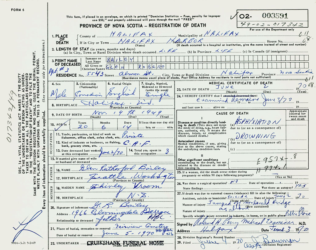 PROVINCE OF NOVA SCOTIA — REGISTRATION OF DEATH