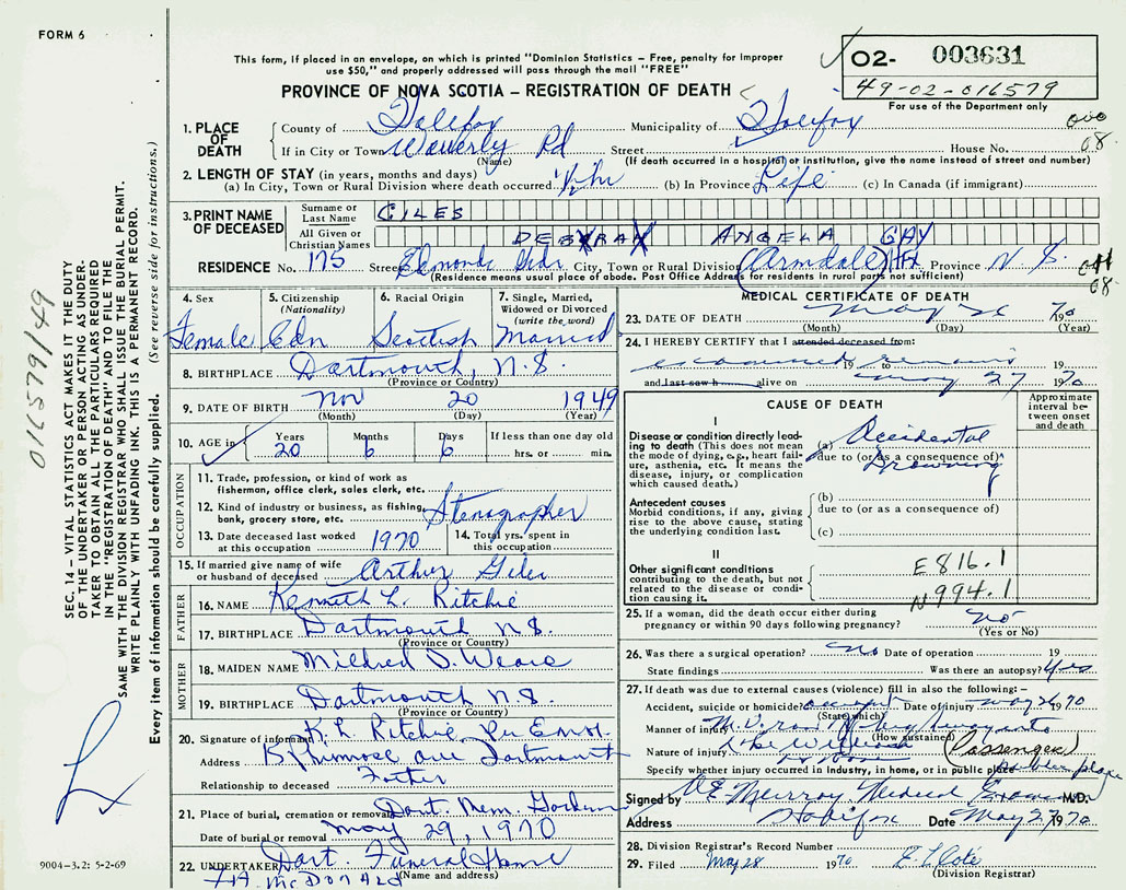 PROVINCE OF NOVA SCOTIA — REGISTRATION OF DEATH