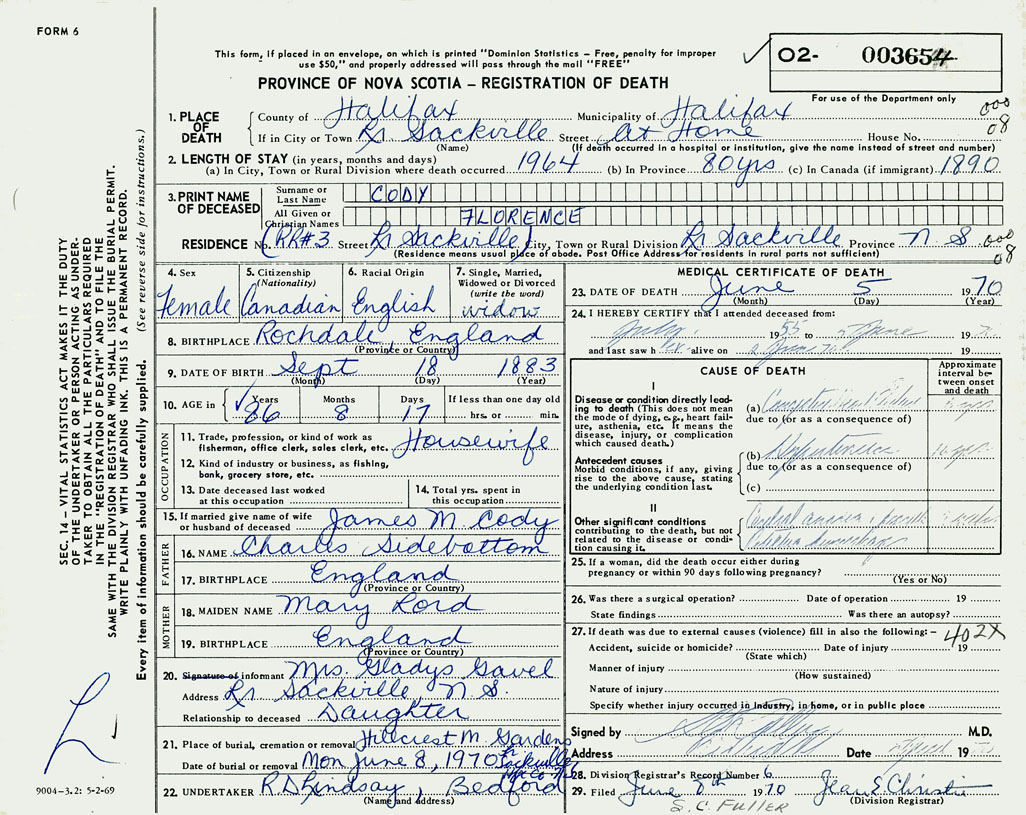 3. PRINT NAME OF DECEASED Cody, Florence